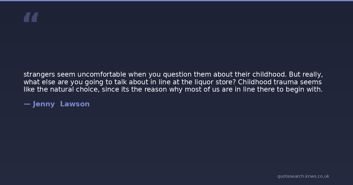 strangers seem uncomfortable when you question them about their childhood. But really, what else are you going to talk about in line at the liquor store? Childhood trauma seems like the natural choice, since its the reason why most of us are in line there to begin with.