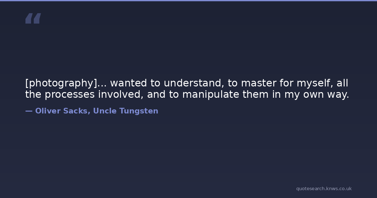 [photography]... wanted to understand, to master for myself, all the processes involved, and to manipulate them in my own way.