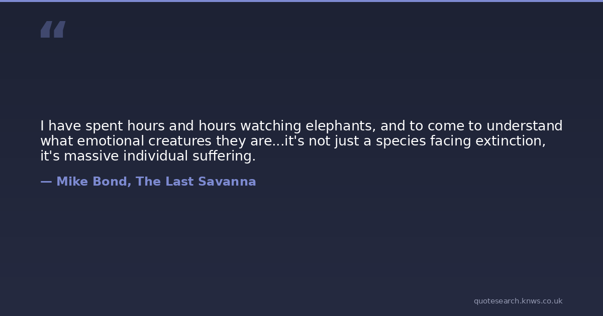 I have spent hours and hours watching elephants, and to come to understand what emotional creatures they are...it's not just a species facing extinction, it's massive individual suffering.