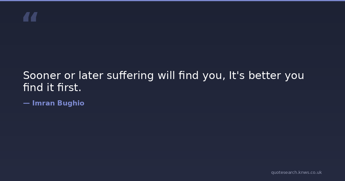 Sooner or later suffering will find you, It's better you find it first. suffering Download Image Share on X Share on Facebook Copy Link