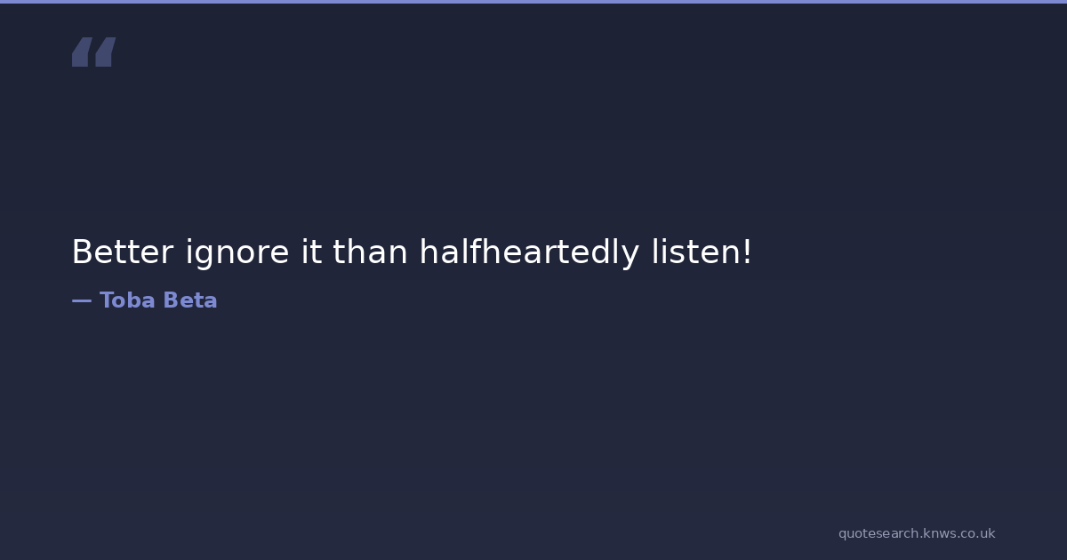 Better ignore it than halfheartedly listen! halfhearted ignorance listen Download Image Share on X Share on Facebook Copy Link