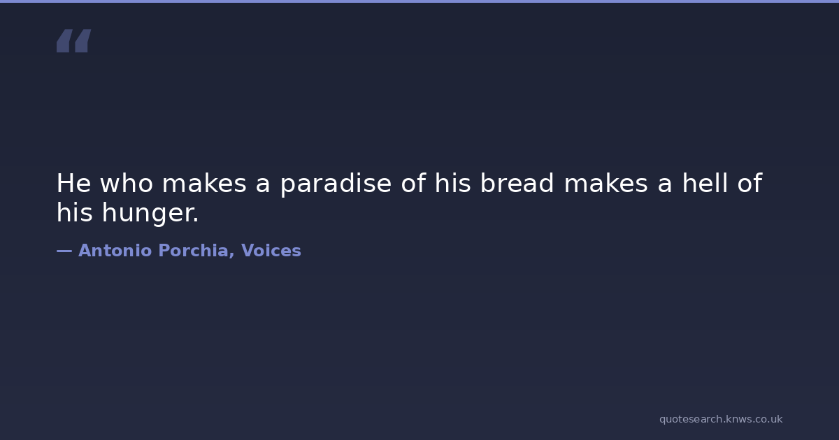 He who makes a paradise of his bread makes a hell of his hunger. ignorance Download Image Share on X Share on Facebook Copy Link