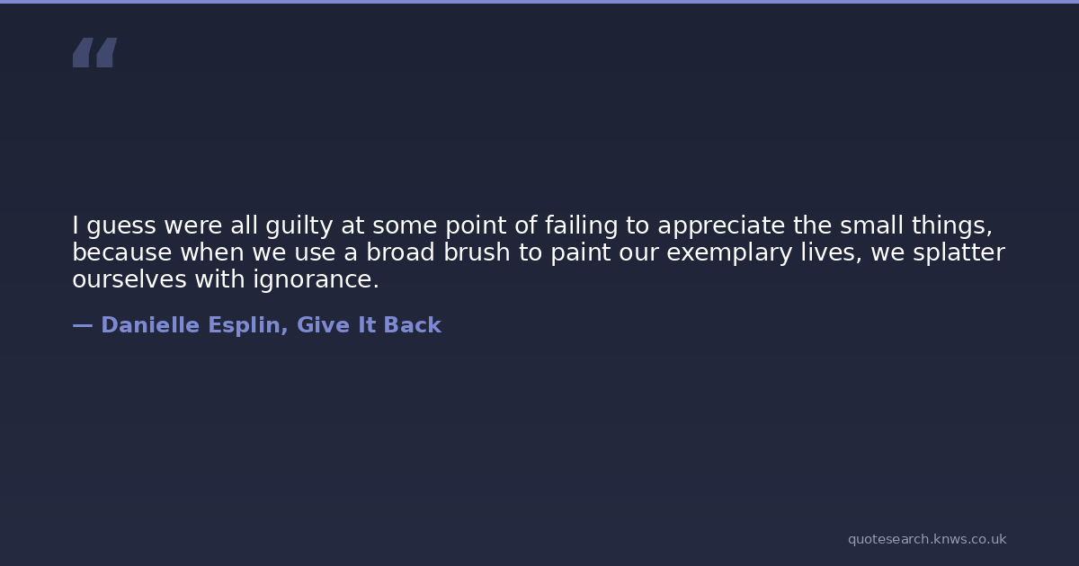 I guess were all guilty at some point of failing to appreciate the small things, because when we use a broad brush to paint our exemplary lives, we splatter ourselves with ignorance.