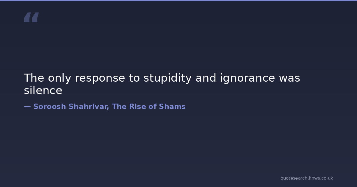 The only response to stupidity and ignorance was silence ignorance silence silence-speaks stupidity the-rise-of-shams Download Image Share on X Share on Facebook Copy Link