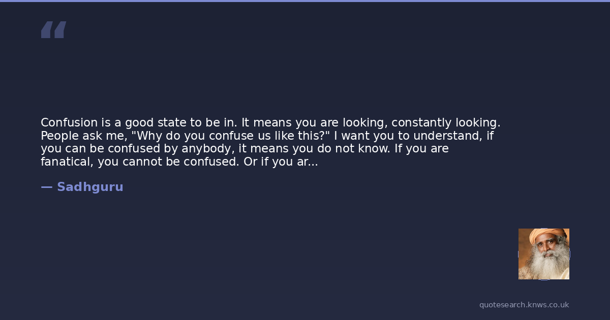 Confusion is a good state to be in. It means you are looking, constantly looking. People ask me, "Why do you confuse us like this?" I want you to understand, if you can be confused by anybody, it means you do not know. If you are fanatical, you cannot be confused. Or if you are realized, you cannot be confused. Between ignorance and enlightenment is a very thin line. But they are worlds apart.