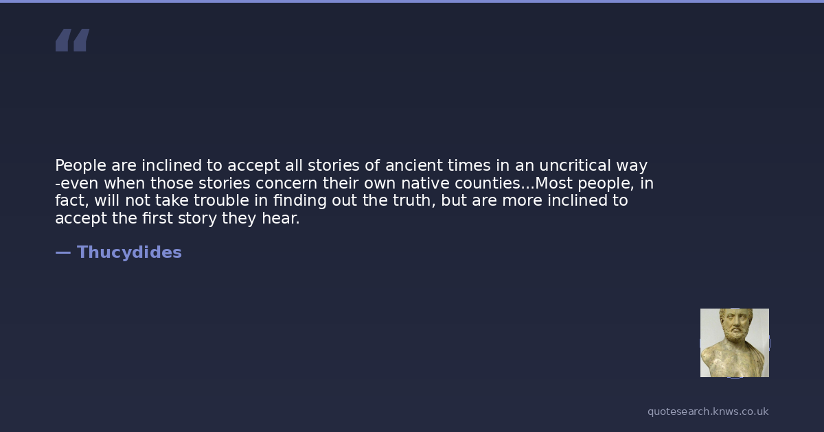 People are inclined to accept all stories of ancient times in an uncritical way -even when those stories concern their own native counties...Most people, in fact, will not take trouble in finding out the truth, but are more inclined to accept the first story they hear.