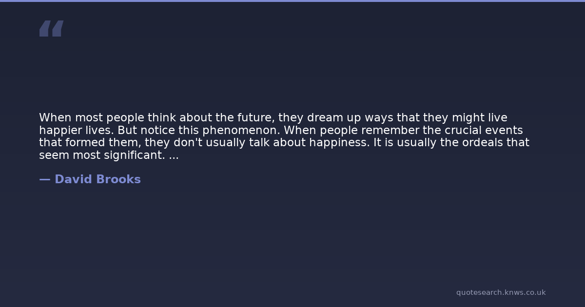 When most people think about the future, they dream up ways that they might live happier lives. But notice this phenomenon. When people remember the crucial events that formed them, they don't usually talk about happiness. It is usually the ordeals that seem most significant. Most people shoot for happiness but feel formed through suffering.
