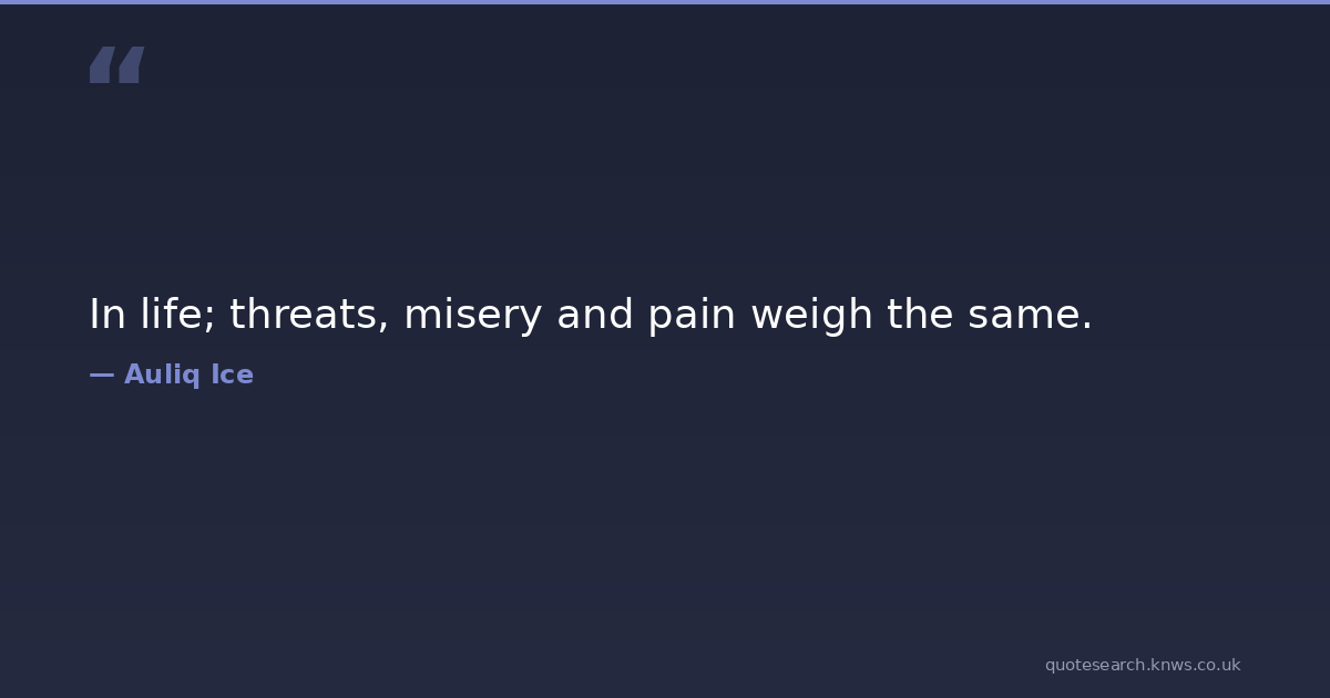 In life; threats, misery and pain weigh the same. suffering Download Image Share on X Share on Facebook Copy Link