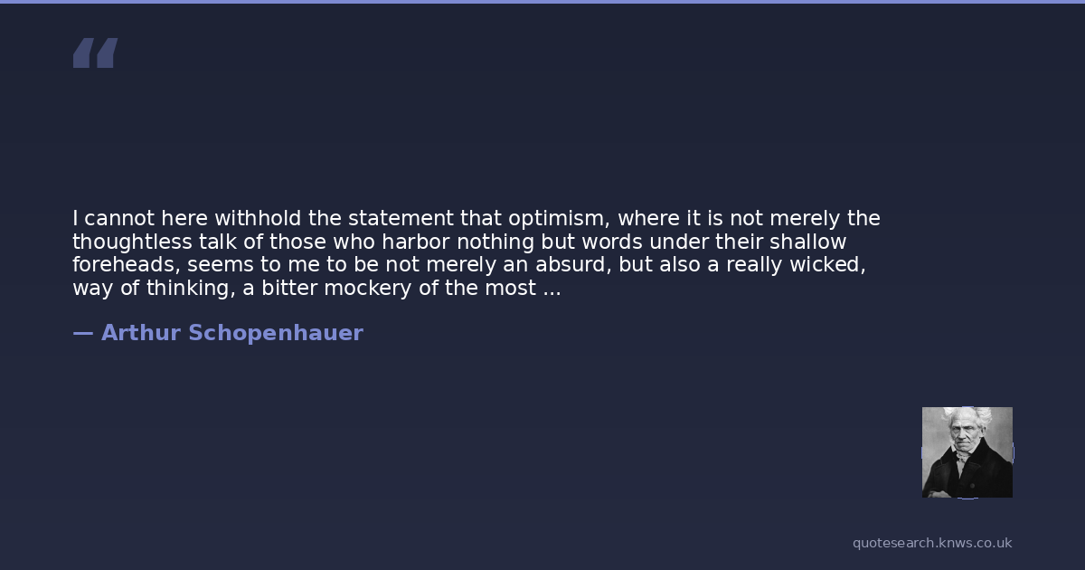 I cannot here withhold the statement that optimism, where it is not merely the thoughtless talk of those who harbor nothing but words under their shallow foreheads, seems to me to be not merely an absurd, but also a really wicked, way of thinking, a bitter mockery of the most unspeakable sufferings of mankind.