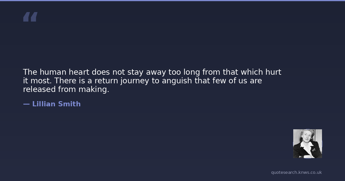The human heart does not stay away too long from that which hurt it most. There is a return journey to anguish that few of us are released from making.