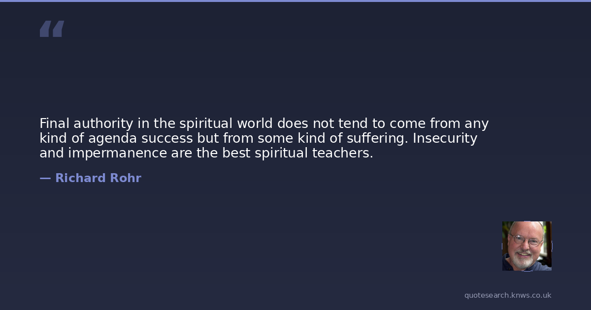 Final authority in the spiritual world does not tend to come from any kind of agenda success but from some kind of suffering. Insecurity and impermanence are the best spiritual teachers.