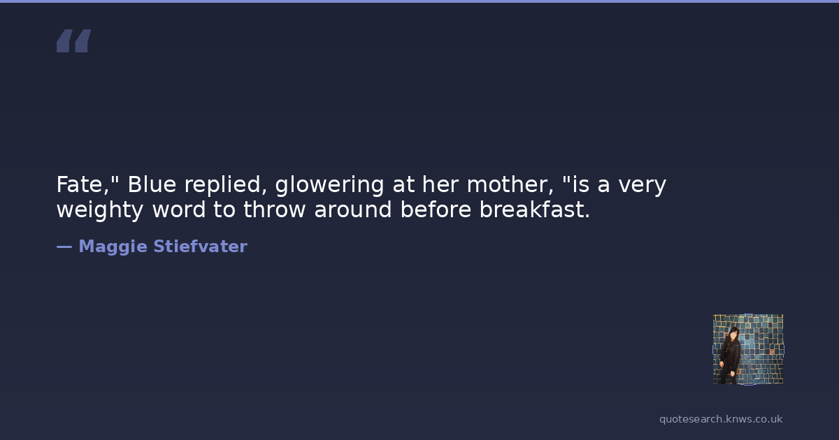 Fate," Blue replied, glowering at her mother, "is a very weighty word to throw around before breakfast.