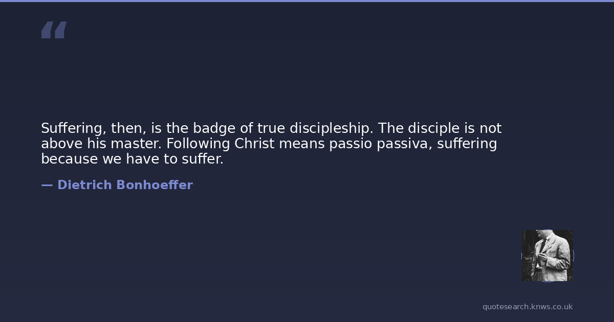 Suffering, then, is the badge of true discipleship. The disciple is not above his master. Following Christ means passio passiva, suffering because we have to suffer.