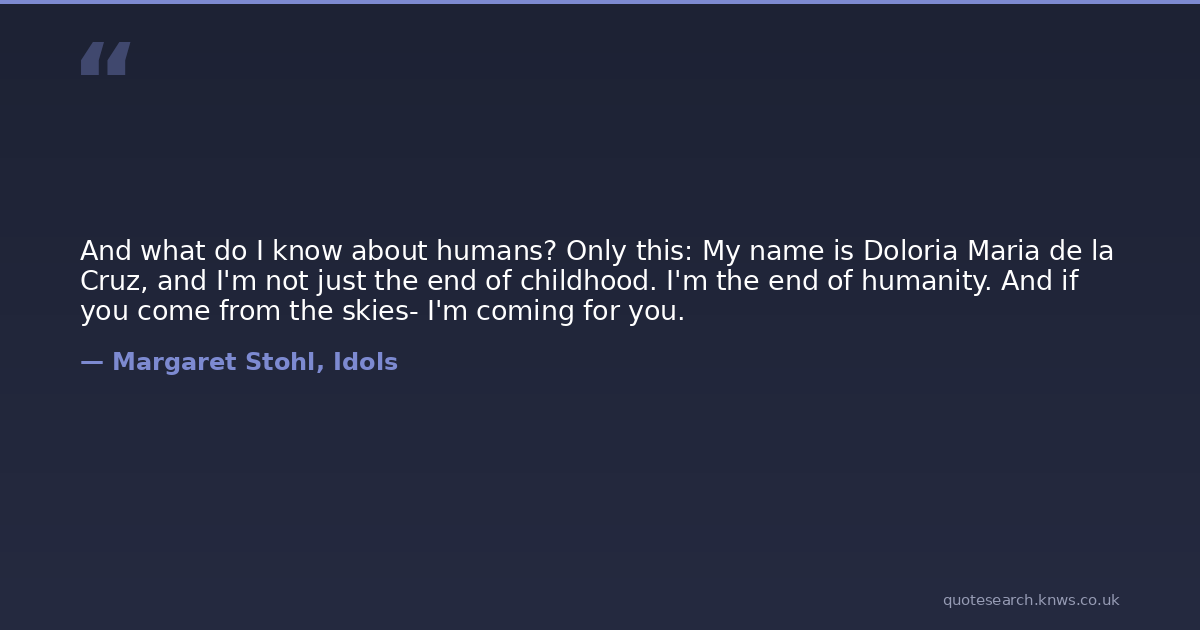 And what do I know about humans? Only this: My name is Doloria Maria de la Cruz, and I'm not just the end of childhood. I'm the end of humanity. And if you come from the skies- I'm coming for you.