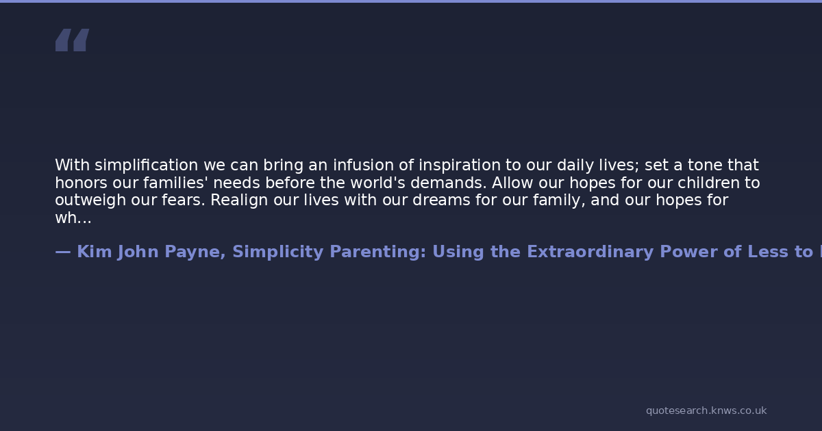 With simplification we can bring an infusion of inspiration to our daily lives; set a tone that honors our families' needs before the world's demands. Allow our hopes for our children to outweigh our fears. Realign our lives with our dreams for our family, and our hopes for what childhood could and should be.