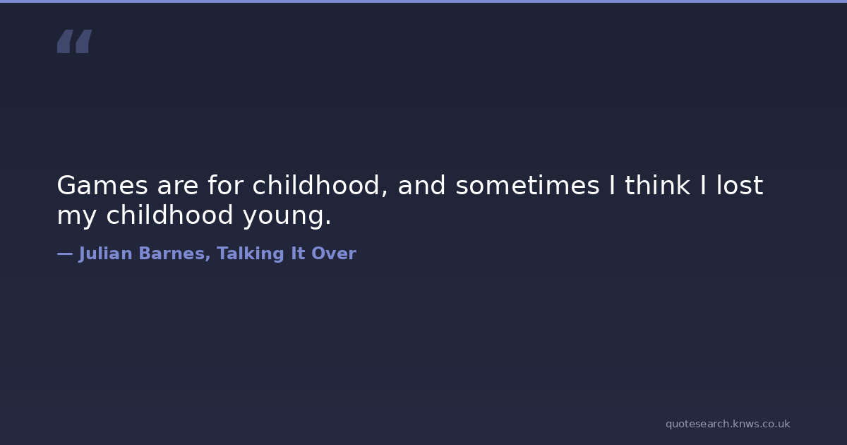 Games are for childhood, and sometimes I think I lost my childhood young.