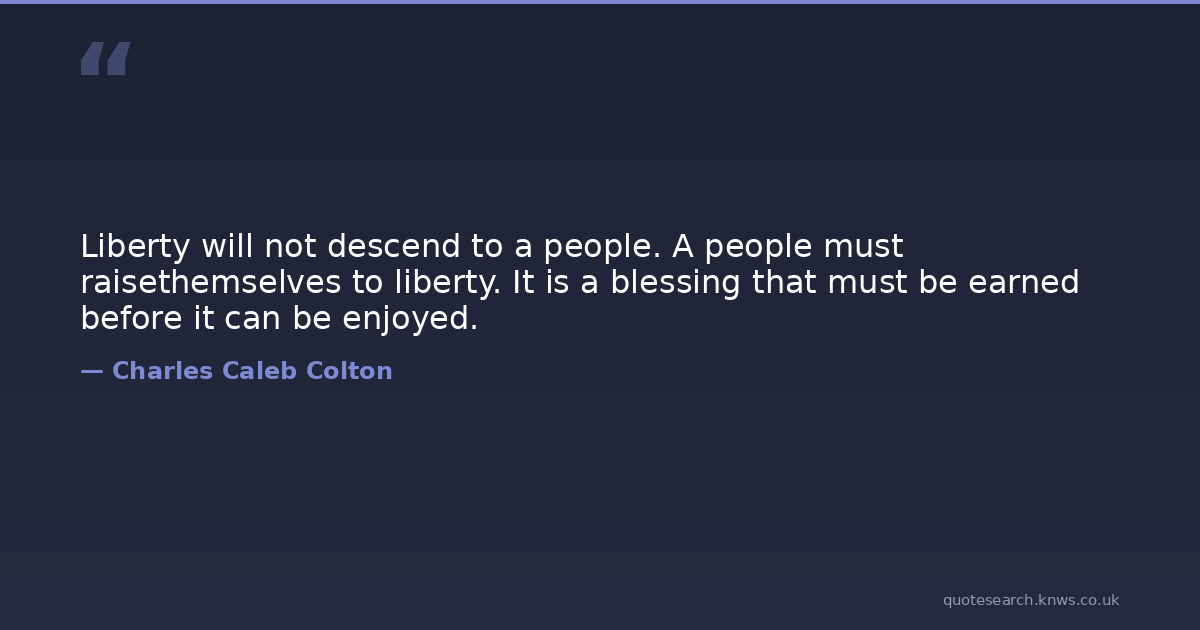 Liberty will not descend to a people. A people must raisethemselves to liberty. It is a blessing that must be earned before it can be enjoyed.