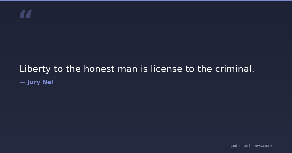 Liberty to the honest man is license to the criminal. honest liberty licence Download Image Share on X Share on Facebook Copy Link