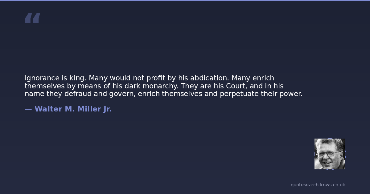 Ignorance is king. Many would not profit by his abdication. Many enrich themselves by means of his dark monarchy. They are his Court, and in his name they defraud and govern, enrich themselves and perpetuate their power.