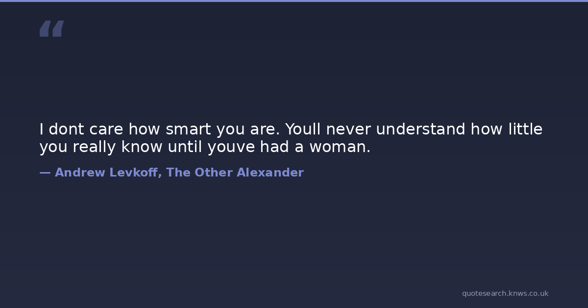 I dont care how smart you are. Youll never understand how little you really know until youve had a woman.