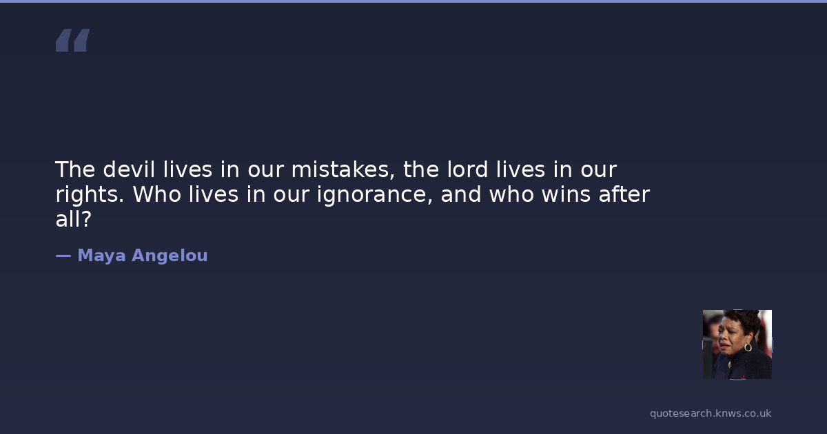 The devil lives in our mistakes, the lord lives in our rights. Who lives in our ignorance, and who wins after all?