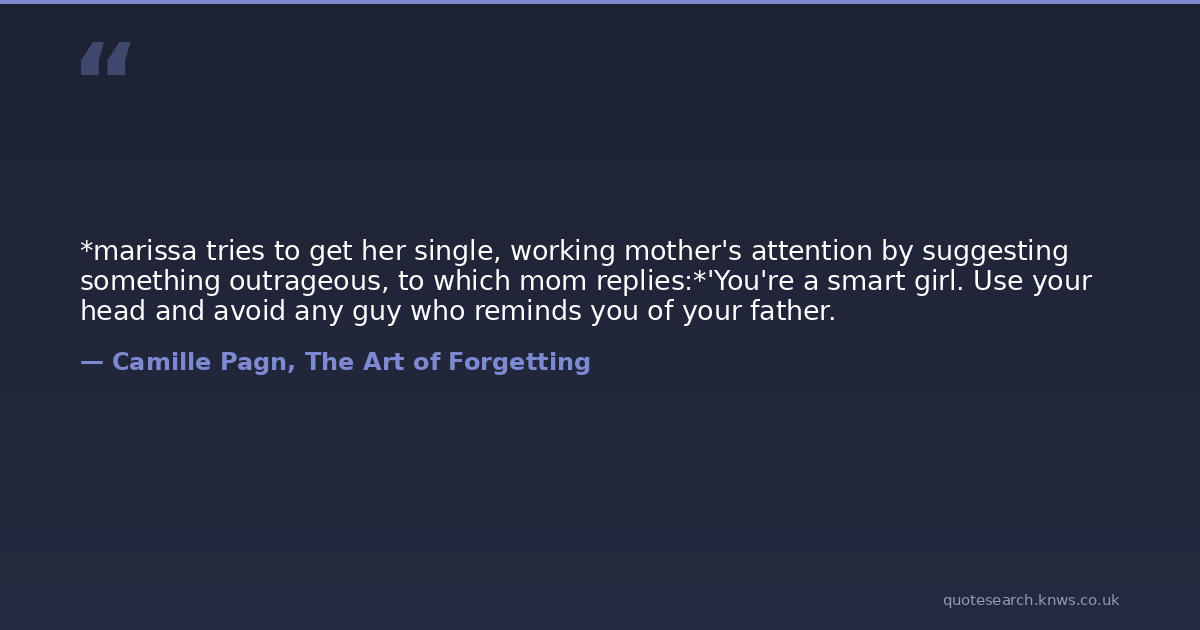 *marissa tries to get her single, working mother's attention by suggesting something outrageous, to which mom replies:*'You're a smart girl. Use your head and avoid any guy who reminds you of your father.