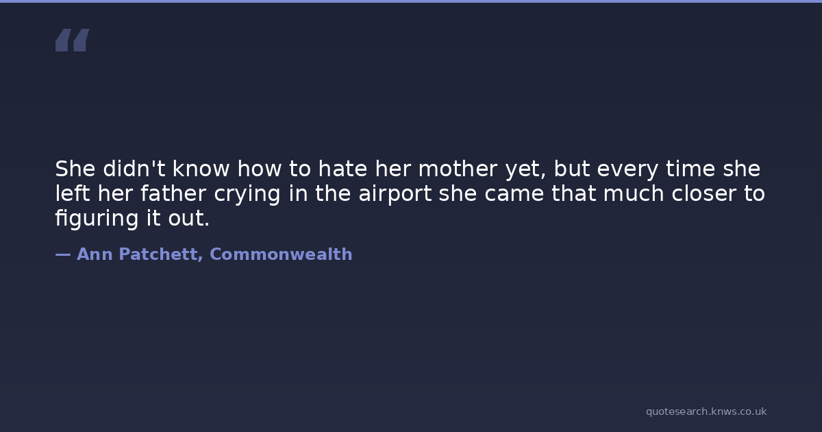 She didn't know how to hate her mother yet, but every time she left her father crying in the airport she came that much closer to figuring it out.