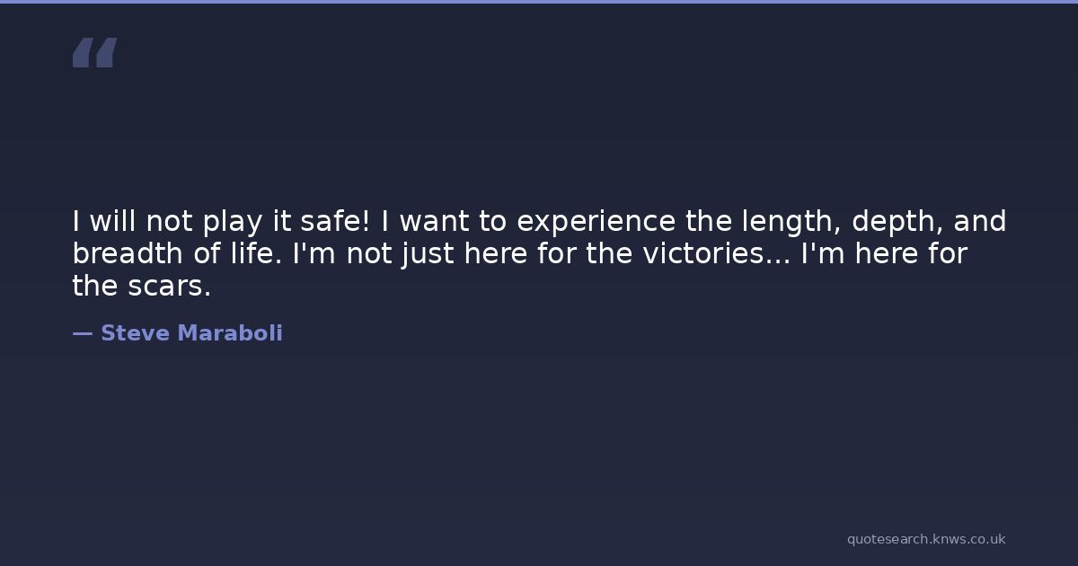 I will not play it safe! I want to experience the length, depth, and breadth of life. I'm not just here for the victories... I'm here for the scars.