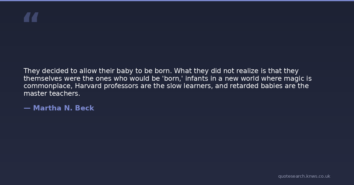 They decided to allow their baby to be born. What they did not realize is that they themselves were the ones who would be 'born,' infants in a new world where magic is commonplace, Harvard professors are the slow learners, and retarded babies are the master teachers.