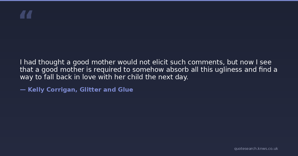 I had thought a good mother would not elicit such comments, but now I see that a good mother is required to somehow absorb all this ugliness and find a way to fall back in love with her child the next day.