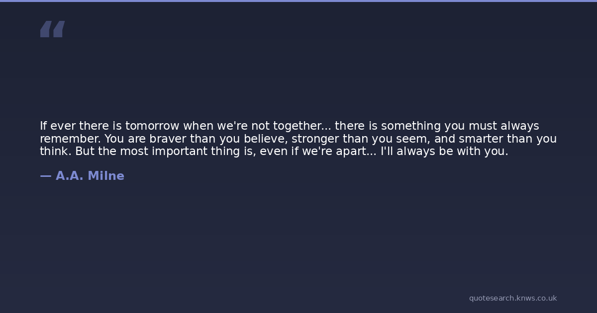 If ever there is tomorrow when we're not together... there is something you must always remember. You are braver than you believe, stronger than you seem, and smarter than you think. But the most important thing is, even if we're apart... I'll always be with you.