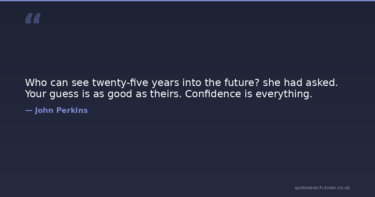 Who can see twenty-five years into the future? she had asked. Your guess is as good as theirs. Confidence is everything.