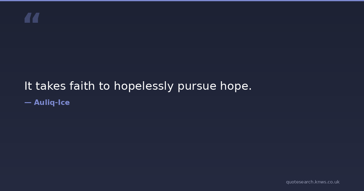It takes faith to hopelessly pursue hope. confidence goal-setting goals-in-life hope inspirational motivational opportunity optimism positive-attitude self-confidence successess Download Image Share on X Share on Facebook Copy Link