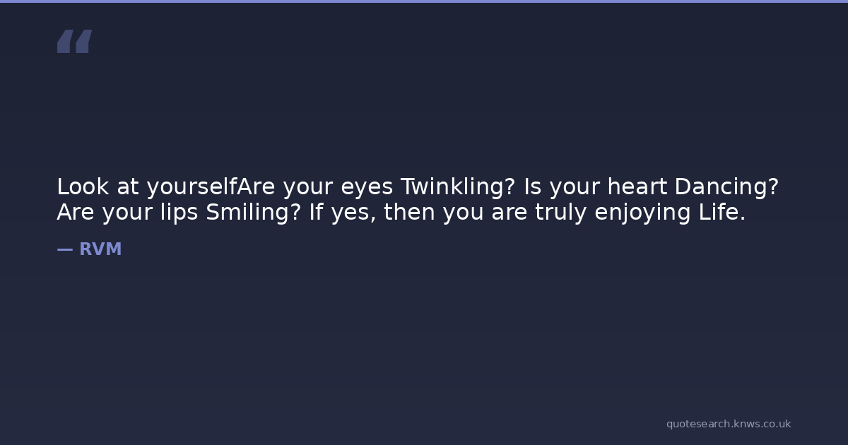 Look at yourselfAre your eyes Twinkling? Is your heart Dancing? Are your lips Smiling? If yes, then you are truly enjoying Life.