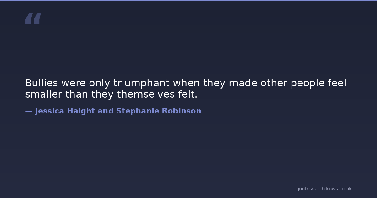 Bullies were only triumphant when they made other people feel smaller than they themselves felt. bullies bully-quote confidence middle-grade-mystery stand-up-to-bullies Download Image Share on X Share on Facebook Copy Link