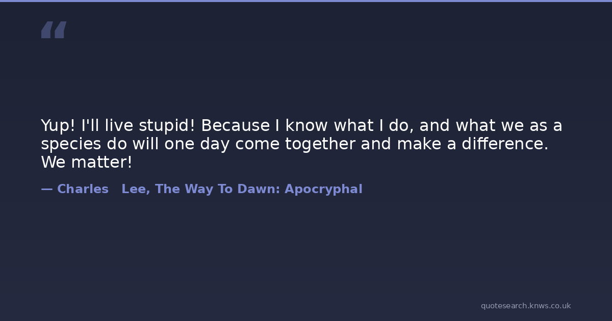 Yup! I'll live stupid! Because I know what I do, and what we as a species do will one day come together and make a difference. We matter!