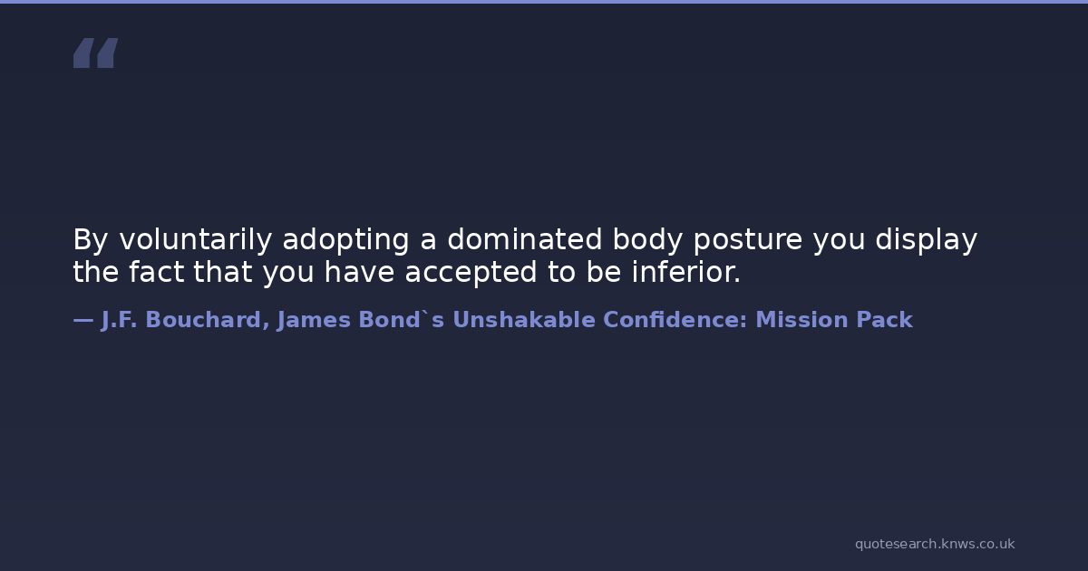 By voluntarily adopting a dominated body posture you display the fact that you have accepted to be inferior. body-language confidence james-bond Download Image Share on X Share on Facebook Copy Link