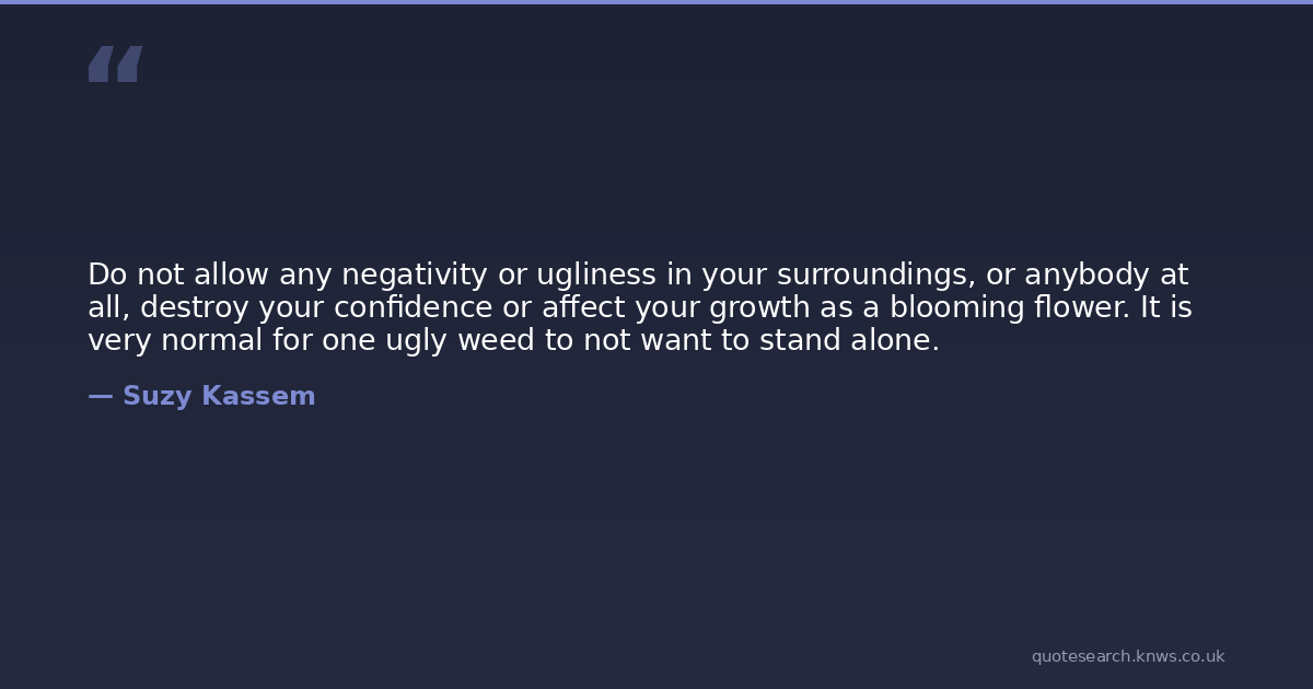 Do not allow any negativity or ugliness in your surroundings, or anybody at all, destroy your confidence or affect your growth as a blooming flower. It is very normal for one ugly weed to not want to stand alone.