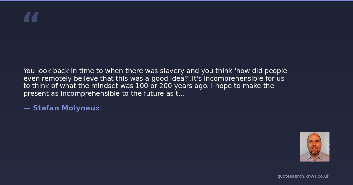 You look back in time to when there was slavery and you think 'how did people even remotely believe that this was a good idea?'.It's incomprehensible for us to think of what the mindset was 100 or 200 years ago. I hope to make the present as incomprehensible to the future as the past is to us.