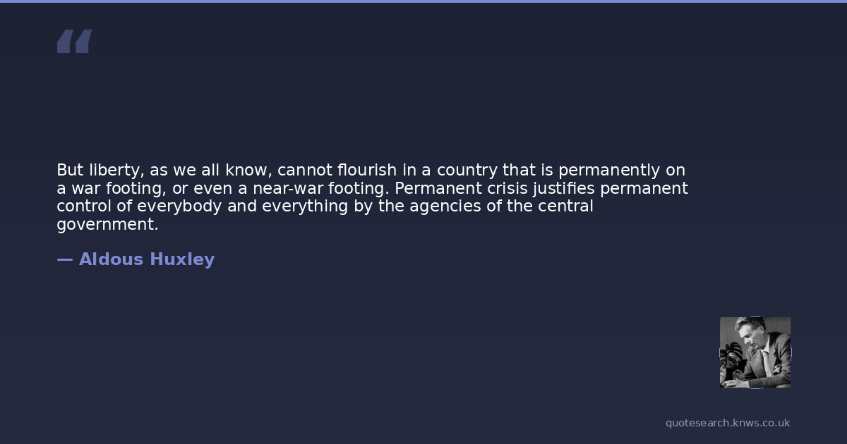 But liberty, as we all know, cannot flourish in a country that is permanently on a war footing, or even a near-war footing. Permanent crisis justifies permanent control of everybody and everything by the agencies of the central government.