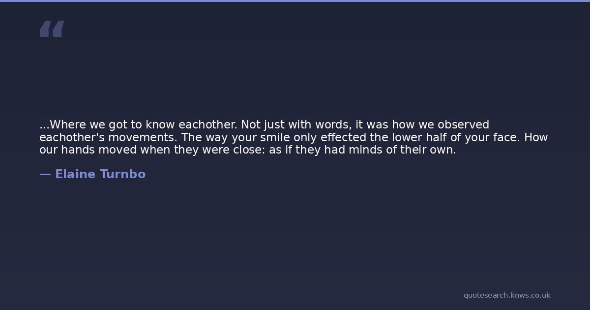...Where we got to know eachother. Not just with words, it was how we observed eachother's movements. The way your smile only effected the lower half of your face. How our hands moved when they were close: as if they had minds of their own.