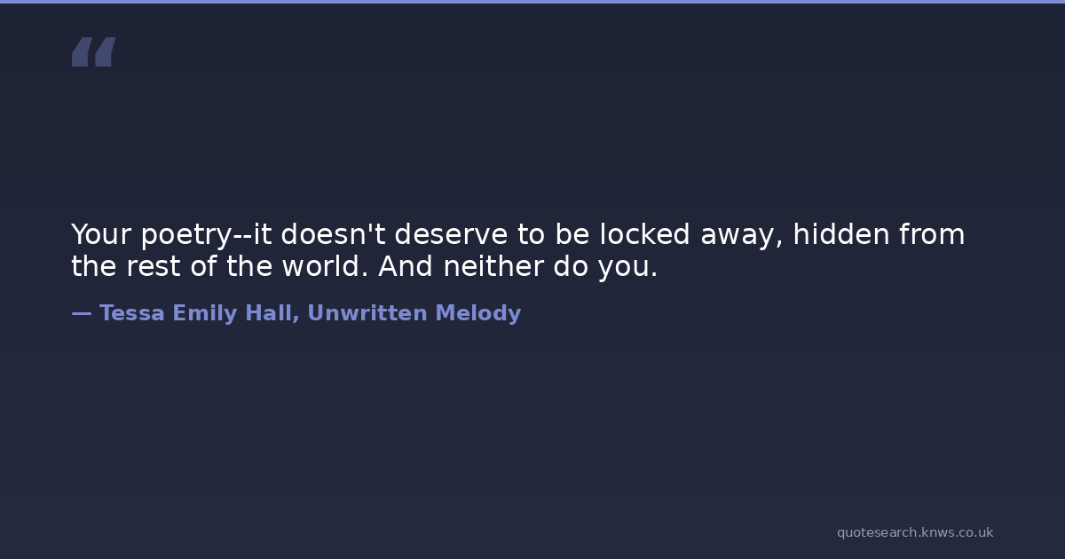 Your poetry--it doesn't deserve to be locked away, hidden from the rest of the world. And neither do you.