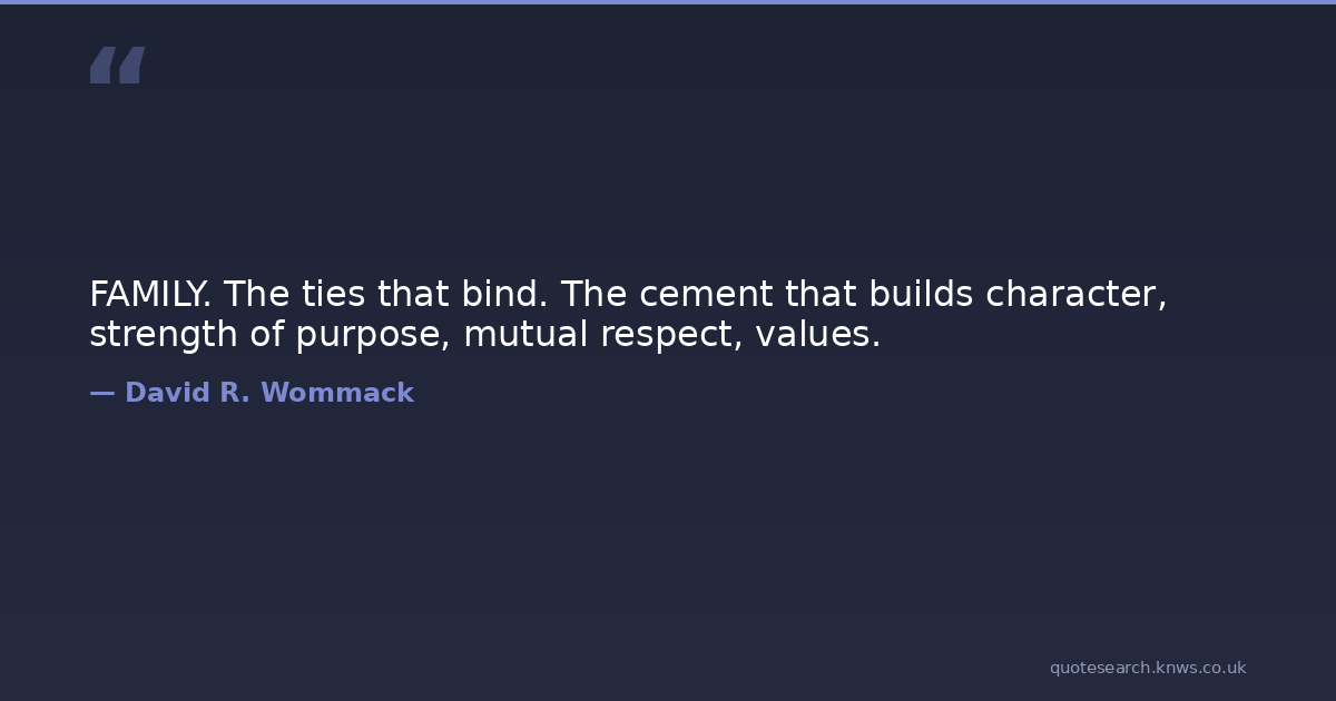 FAMILY. The ties that bind. The cement that builds character, strength of purpose, mutual respect, values.