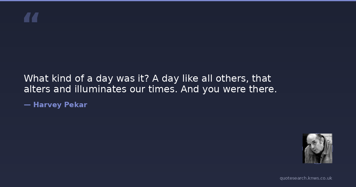 What kind of a day was it? A day like all others, that alters and illuminates our times. And you were there.