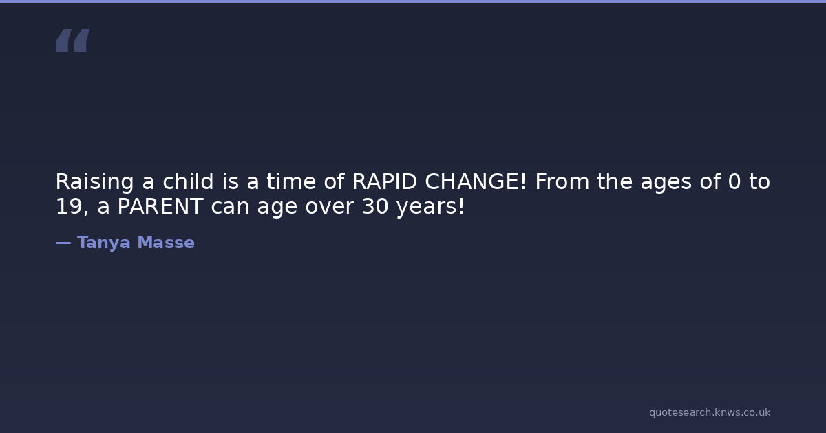 Raising a child is a time of RAPID CHANGE! From the ages of 0 to 19, a PARENT can age over 30 years!