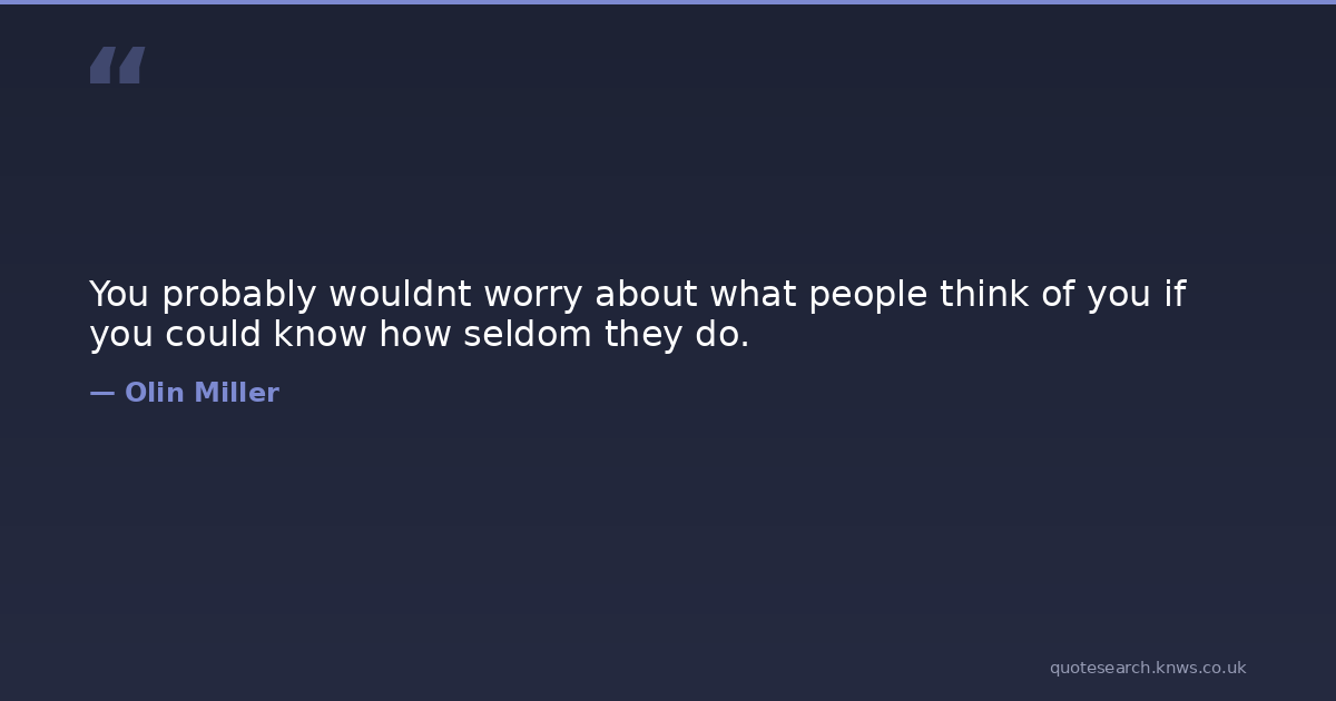 You probably wouldnt worry about what people think of you if you could know how seldom they do.