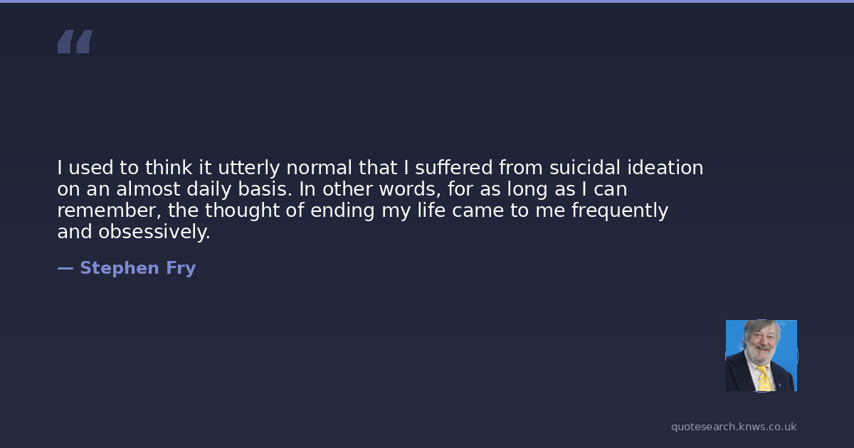 I used to think it utterly normal that I suffered from suicidal ideation on an almost daily basis. In other words, for as long as I can remember, the thought of ending my life came to me frequently and obsessively.