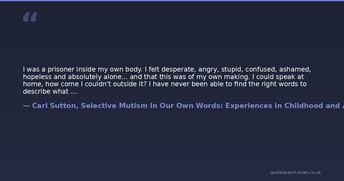 Carl Sutton, Selective Mutism In Our Own Words: Experiences in Childhood and Adulthood.