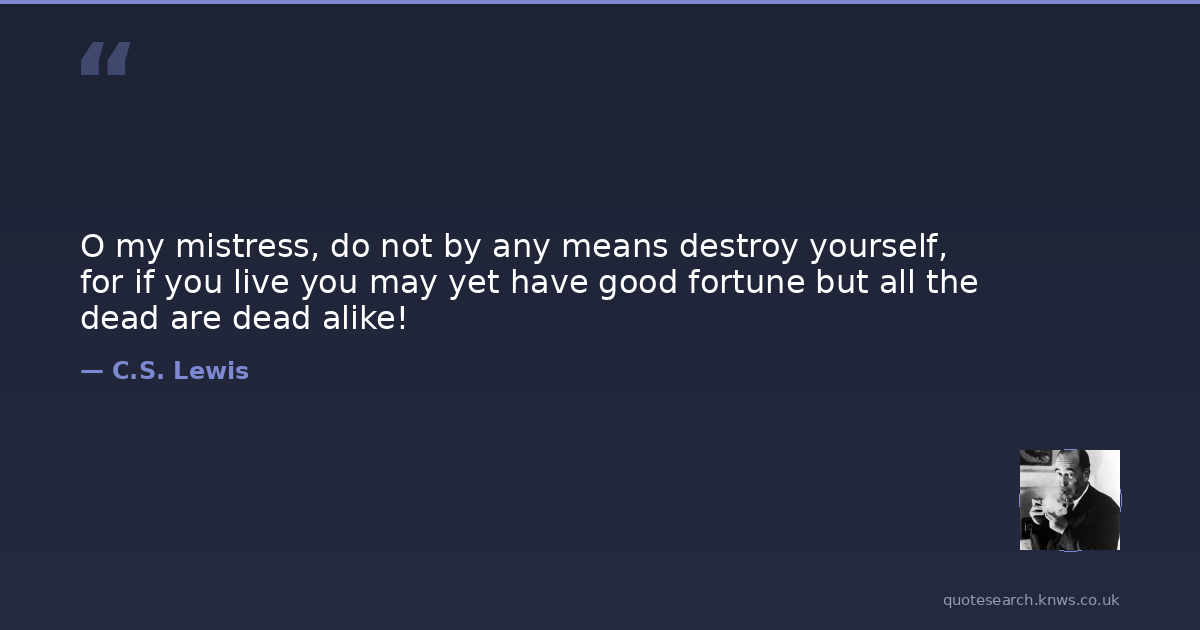 O my mistress, do not by any means destroy yourself, for if you live you may yet have good fortune but all the dead are dead alike!