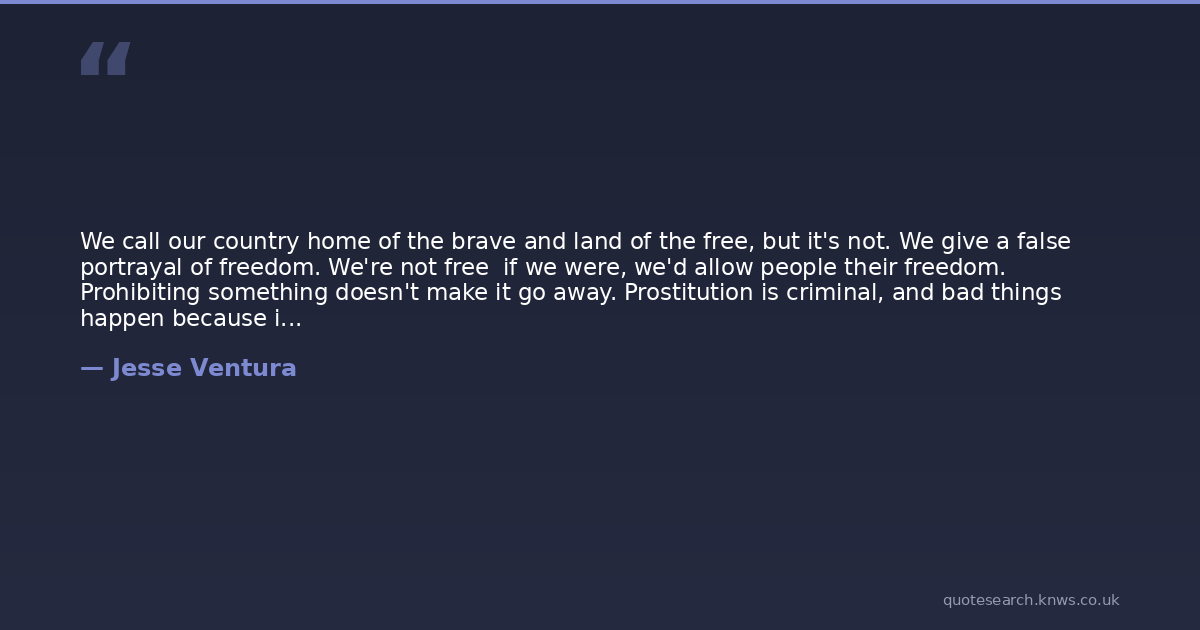 We call our country home of the brave and land of the free, but it's not. We give a false portrayal of freedom. We're not free if we were, we'd allow people their freedom. Prohibiting something doesn't make it go away. Prostitution is criminal, and bad things happen because it's run illegally by dirt-bags who are criminals. If it's legal, then the girls could have health checks, unions, benefits, anything any other worker gets, and it would be far better.